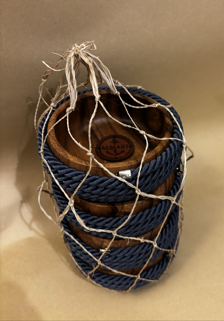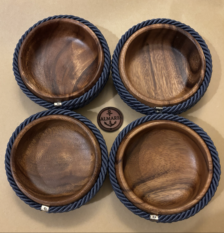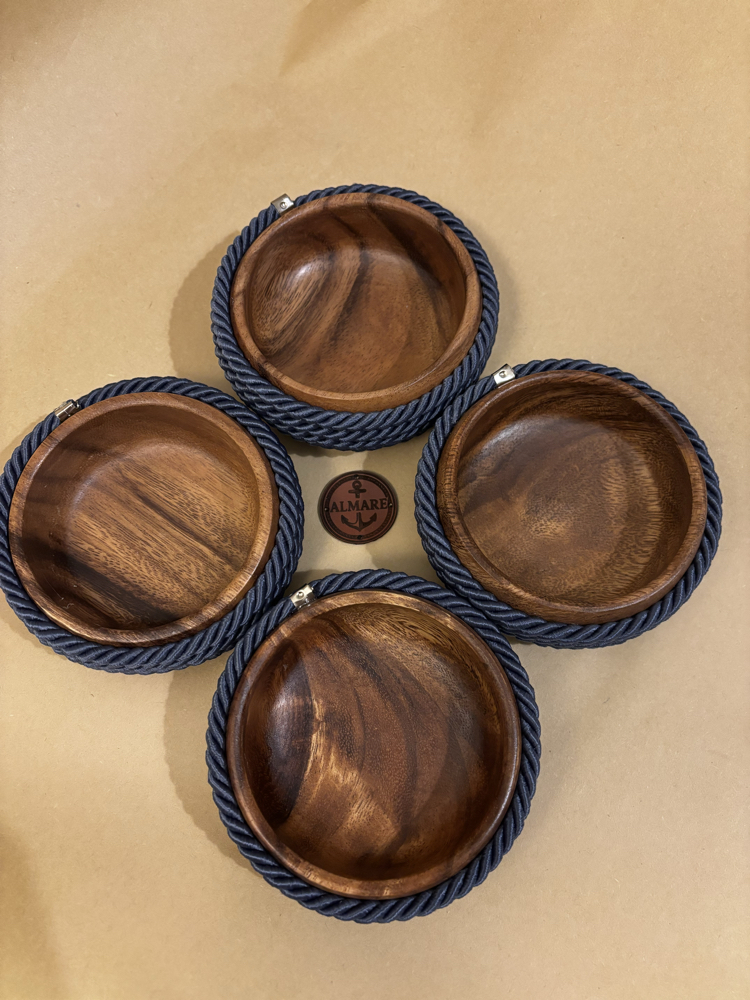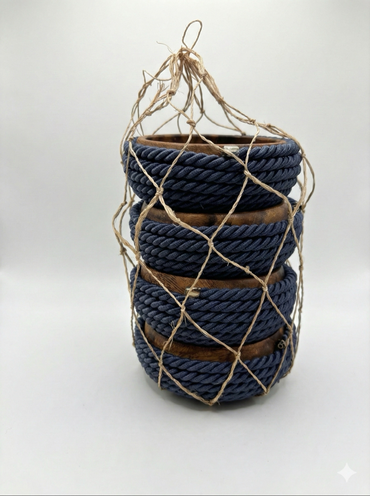 Marin halatlarla örülmüş, el emeği, el işçiliği özel tasarım 4 adet küçük çerezlik. Denizden gelen zarafet ve şıklık bu sunum kasesiyle hep sofralarınızda. Deniz severler için çok şık bir hediye.