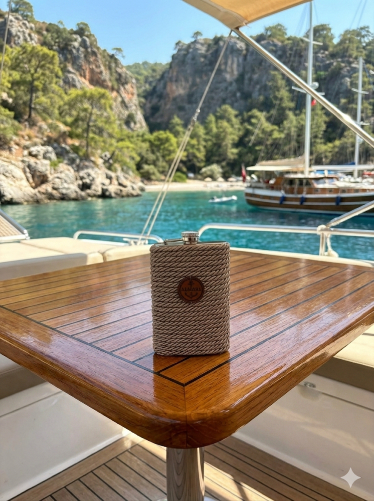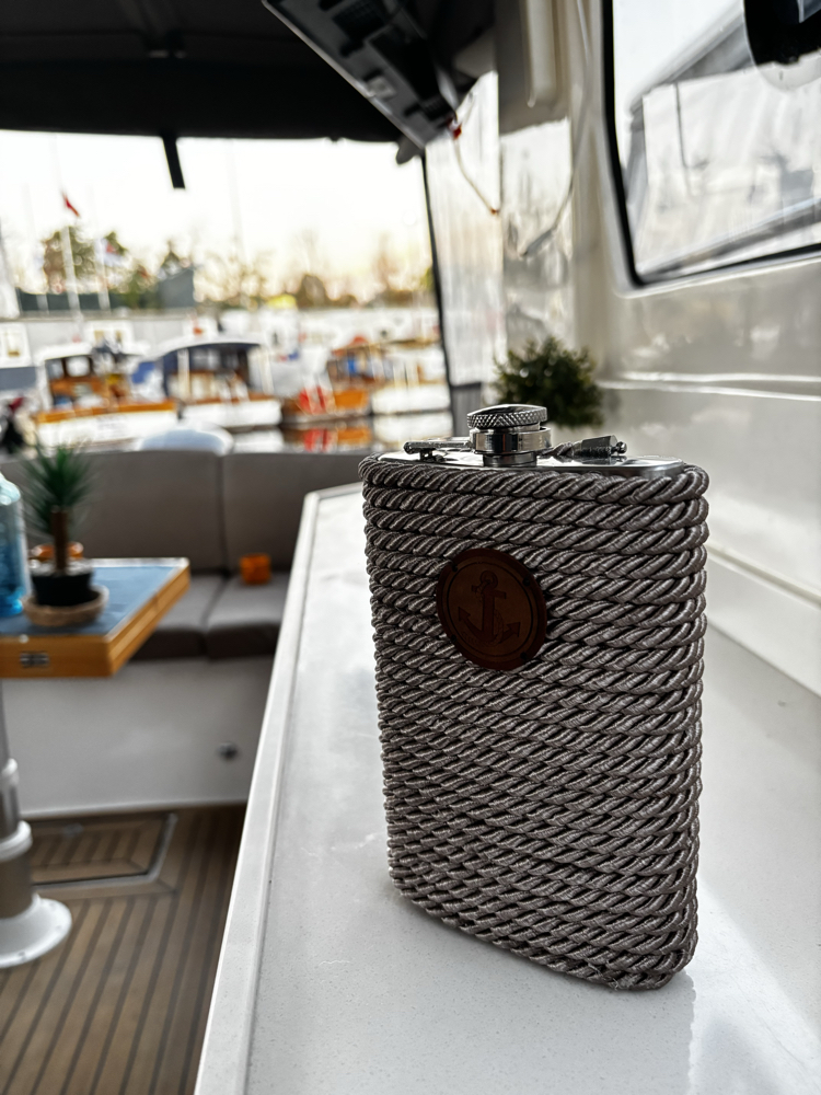 Marin halatlarla örülmüş, el emeği, el işçiliği özel tasarım. Denizden gelen zarafet ve şıklık bu matarayla hep yanınızda. Deniz severler için çok şık bir hediye.