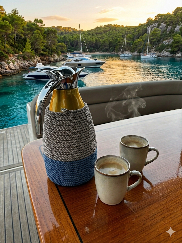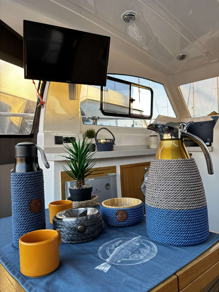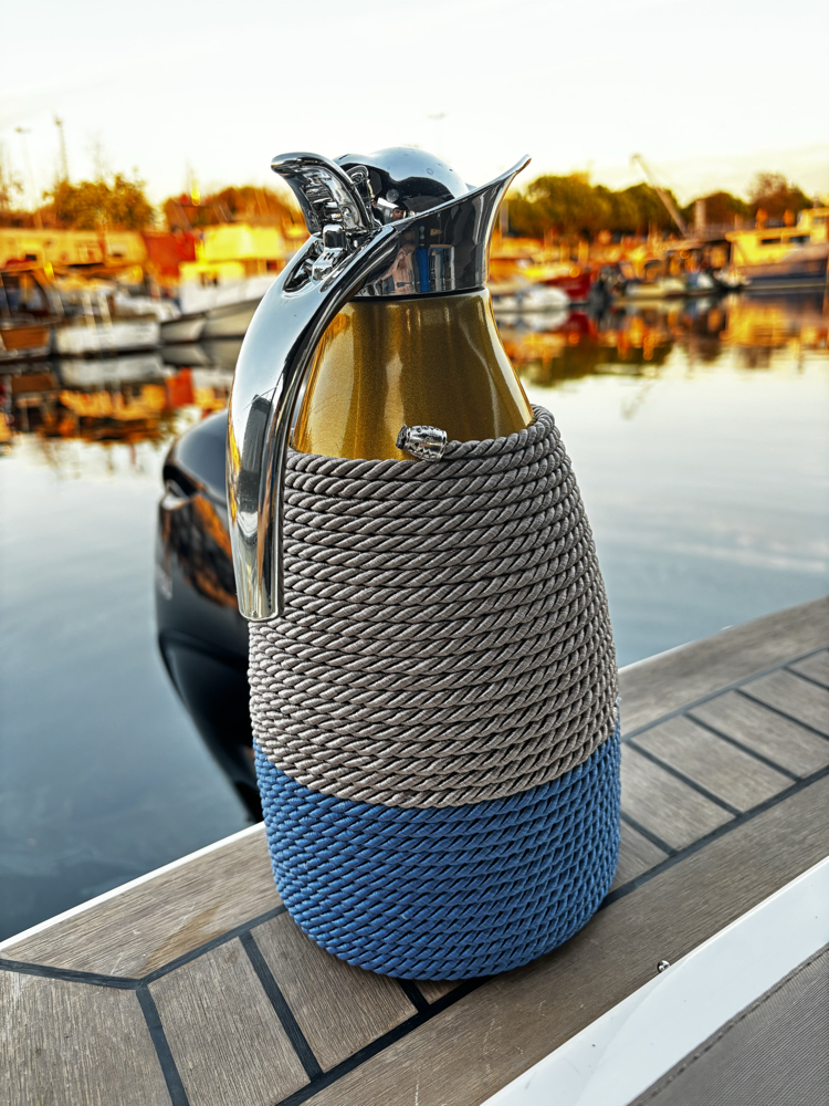 Marin halatlarla örülmüş, el emeği, el işçiliği özel tasarım. Denizden gelen zarafet ve şıklık bu sunum sürahisiyle hep masalarınızda. Deniz severler için çok şık bir hediye.