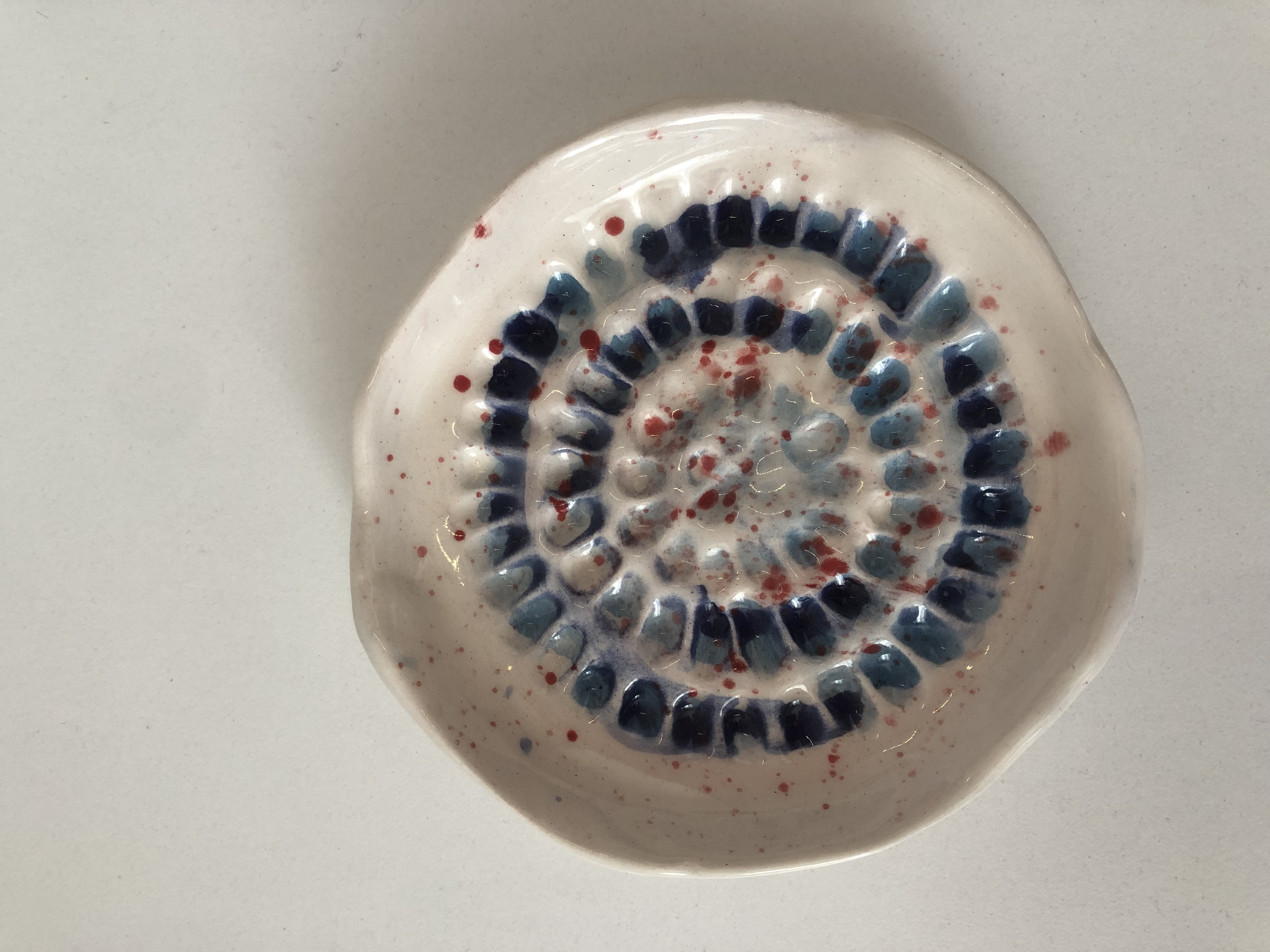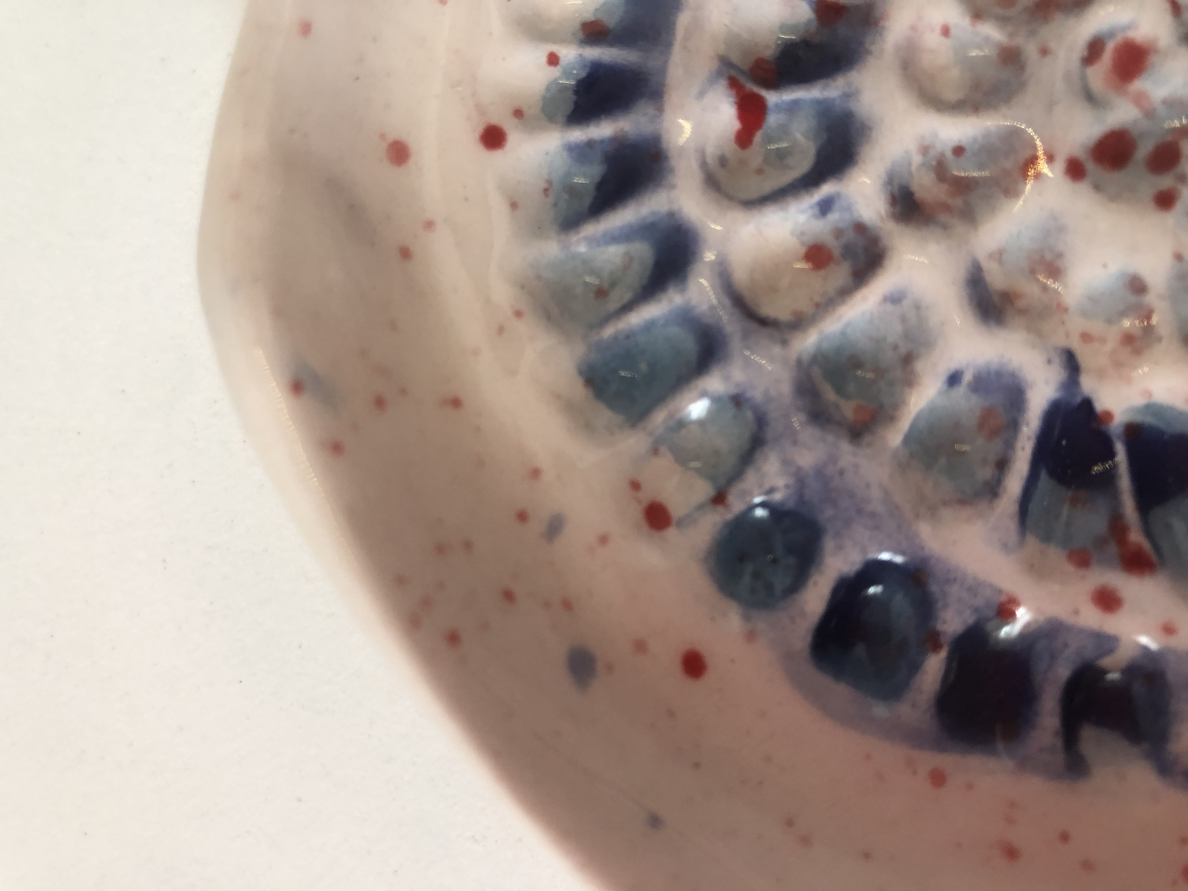 - Mavi Tonları Kırmızı Leke Detaylı Oyuklu Tabak