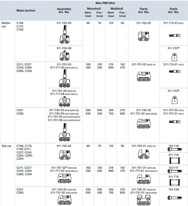 Teknenizde Selden direğiniz varsa MDS yelken arabalarını kullanabilirsiniz.